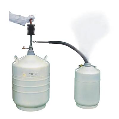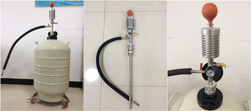 该产品依靠操作者手捏吸液球(ZYB-����� �������Ƴ������������ �������Ƴ������������ �������Ƴ������������ �������Ƴ�������5型),使液氮容器内贮存的液����� �������Ƴ������������ �������Ƴ������������ �������Ƴ����������� �������Ƴ�������氮少量产生气化。由于液氮的气液体积比较大,气化后����� �������Ƴ������������ �������Ƴ����������� �������Ƴ������������ �������Ƴ�������的氮气在密封的容器内对盛装的液氮����� ������ �������Ƴ������������ �������Ƴ������������ �������Ƴ������������ �������Ƴ�������������Ƴ�������增压,促使容����� �������Ƴ������������ �������Ƴ������������ �������Ƴ������������ �������Ƴ�������器内盛装的液氮排放出来,达到对其它容器补充液氮的����� �������Ƴ������������ �������Ƴ������������ �������Ƴ������������ �������Ƴ�������目的。它具有操作方便可靠、排液过程中液氮的����� �������Ƴ������������ �������Ƴ������������ �������Ƴ����������� �������Ƴ�������蒸发损失低的优点。